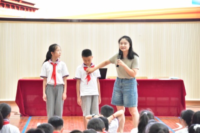 在大队辅导员程晓韵老师带领下,预备新生们认真学习了少先队礼仪知识,如何规范地佩戴红领巾、如何标准地行队礼等。程老师不仅亲自示范,还逐一纠正同学们的动作。她强调,少先队员的身份是一份荣誉,更是一份责任。掌握少先队礼仪知识,不仅是对少先队组织的尊重,更是对祖国未来的承诺。