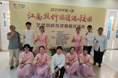我校丝竹小乐队表演了江南丝竹传统名曲《行街》,韵味中正、醇厚流畅,你简我繁、你进我出,演奏已显出相当的功力,充分彰显了陆行中学南校作为第二批全国中小学中华优秀传统文化艺术传承学校、上海首个江南丝竹进校园实验基地、上海市非遗在校园示范校,近30年来在深耕江南丝竹传承教育中取得的丰硕成果。